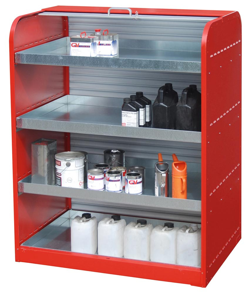 ∙ Mit Alu-Rolllade ∙ Für den Innenbereich bzw. unter Dach ∙ Stabile Konstruktion aus Stahlblech ∙ Natürlicher Luftwechsel ∙ Abschließbar mittels Zylinderschloss ∙ Korpus pulverbeschichtet, Auffangwannen und Gitterroste verzinkt