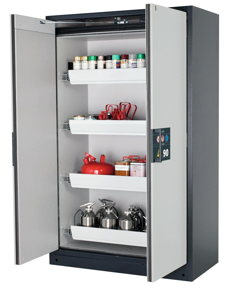 Gefahrstoffschrank, BxTxH 1193x615x1953 mm, 4 Auszugswannen, inkl. TSA, AGT, RAL 7016/7035