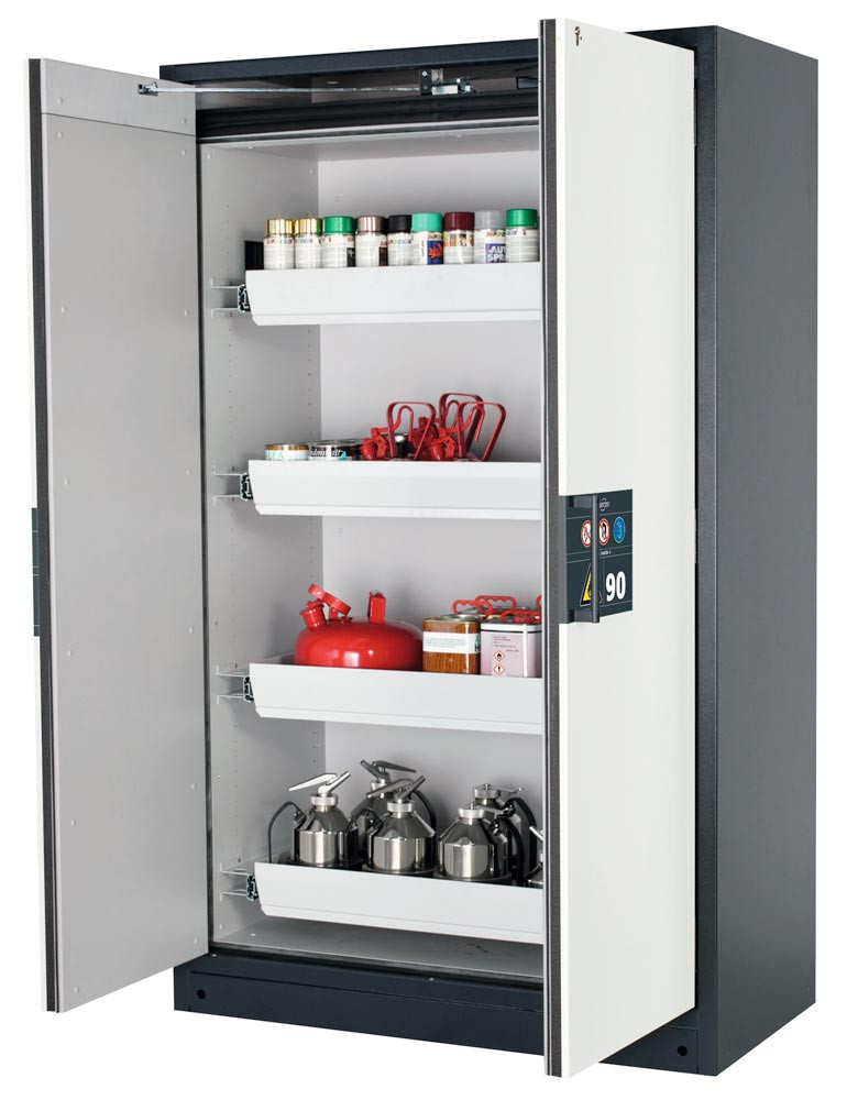 Gefahrstoffschrank, BxTxH 1193x615x1953 mm, 4 Auszugswannen, inkl. TSA,AGT, RAL 7016/9010