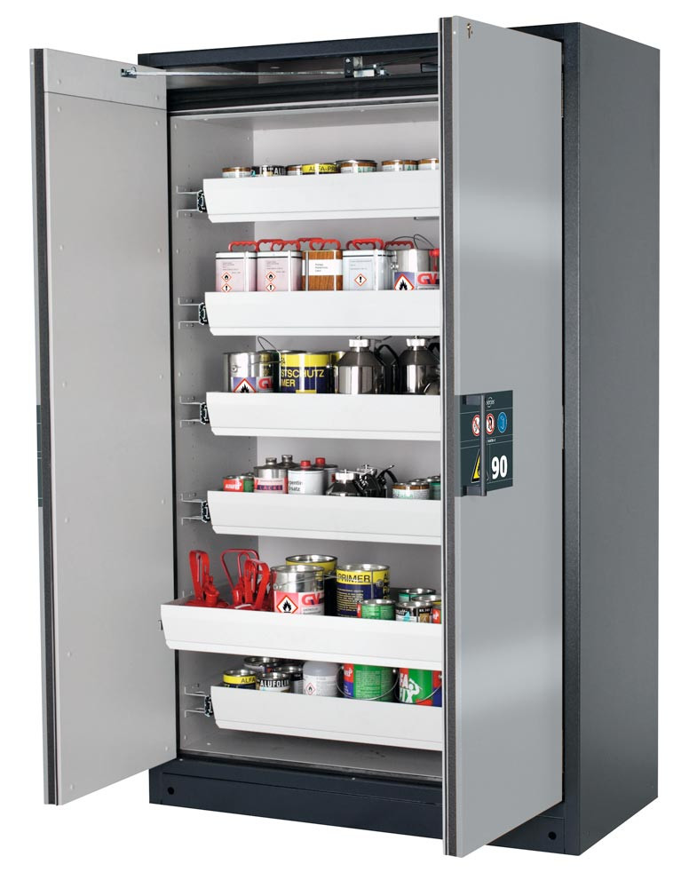 Gefahrstoffschrank, BxTxH 1193x615x1953 mm, 4 Auszugswannen, inkl. TSA, AGT, RAL 7016/5010 E1980091