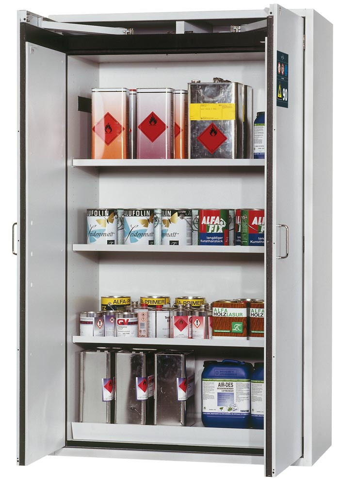 ∙ Zur vorschriftsmäßigen Lagerung von Gefahrstoffen in Arbeitsräumen gemäß DIN EN 14470-1 (Typ 90) und TRGS 510 Anhang 1