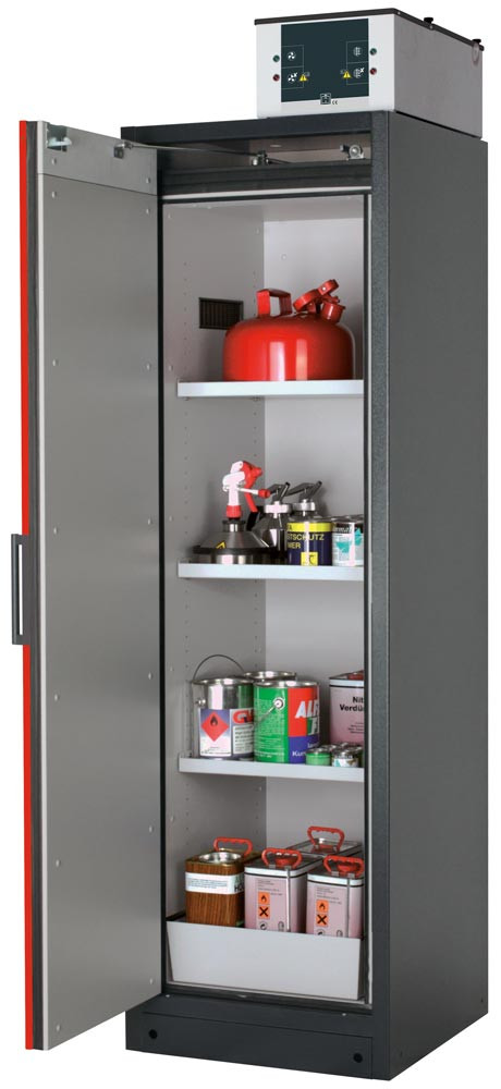 Gefahrstoffschrank, BxTxH 599x615x1953 mm, 3 Böden, 1 Auffangwanne mit Lochblecheinsatz, inkl. TSA, AGT, RAL 7016/1004 E1968020