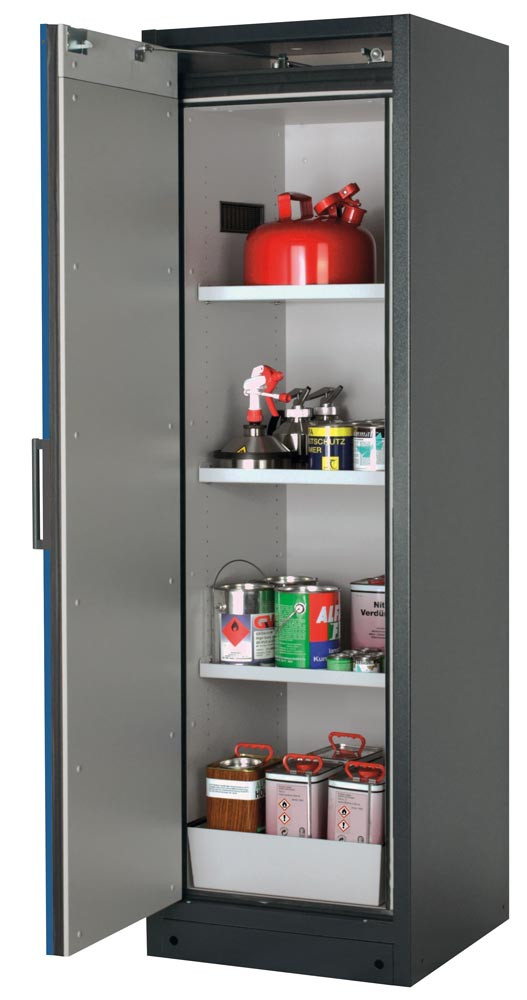 Gefahrstoffschrank, BxTxH 599x615x1953 mm, 3 Böden, 1 Auffangwanne mit Lochblecheinsatz, inkl. TSA, AGT, RAL 7016/5010 E1968022