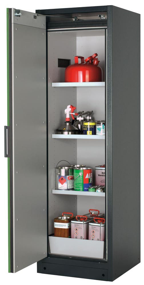 Gefahrstoffschrank, BxTxH 599x615x1953 mm, 3 Böden, 1 Auffangwanne mit Lochblecheinsatz, inkl. TSA, AGT, RAL 7016/6011 E1968023