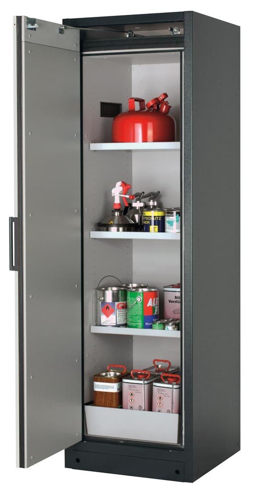 Gefahrstoffschrank, BxTxH 599x615x1953 mm, 3 Böden, 1 Auffangwanne mit Lochblecheinsatz, inkl. TSA, AGT, RAL 7016/1004 E1968020