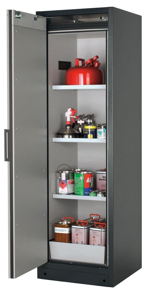 Gefahrstoffschrank, BxTxH 599x615x1953 mm, 3 Böden, 1 Auffangwanne mit Lochblecheinsatz, inkl. TSA, AGT, RAL 7016/9010