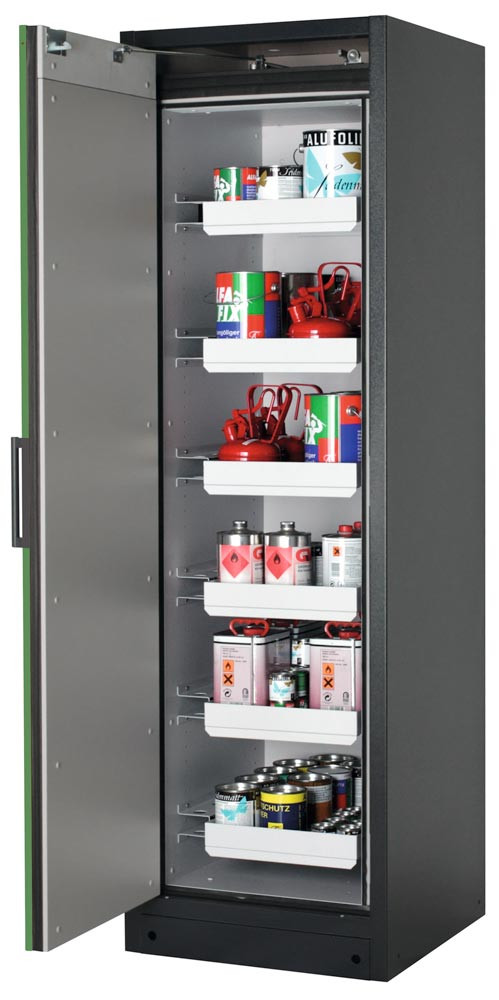 Gefahrstoffschrank, BxTxH 599x615x1953 mm, 6 Auszugswannen, inkl. TSA, AGT, RAL 7016/6011