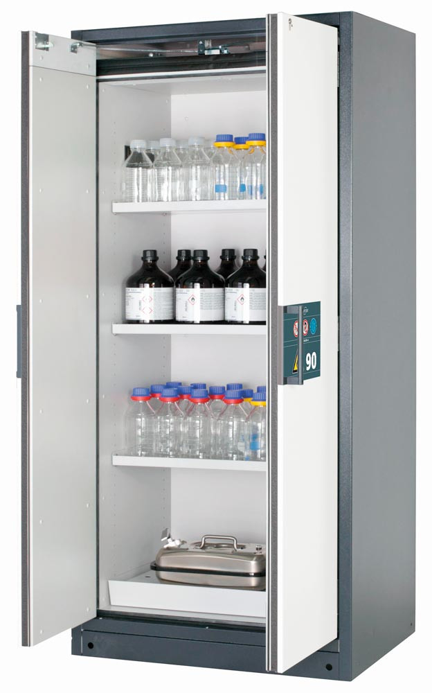 Gefahrstoffschrank, BxTxH 893x615x1953 mm, 3 Böden, 1 Auffangwanne mit Lochblecheinsatz, inkl. AGT und TSA, RAL 7016/3020 E1968028