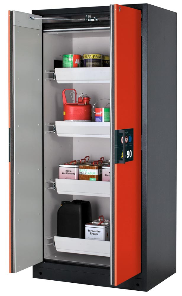 Gefahrstoffschrank, BxTxH 893x615x1953 mm, 4 Auszugswannen, inkl. TSA, AGT, RAL 7016/3020 E1980076