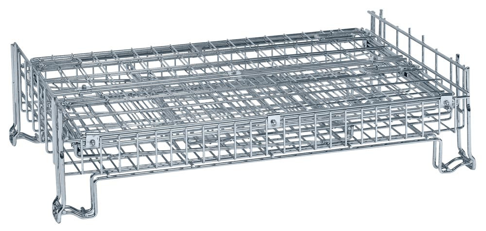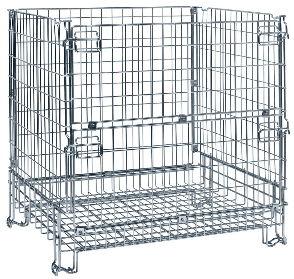 ∙ Elekrolytisch verzinkte Gitterboxen ∙ Mit aufklappbarer Öffnung an der Längsseite ∙ Auflast bis 3000 kg · Stapel- und klappbar · Werkzeuglose Montage