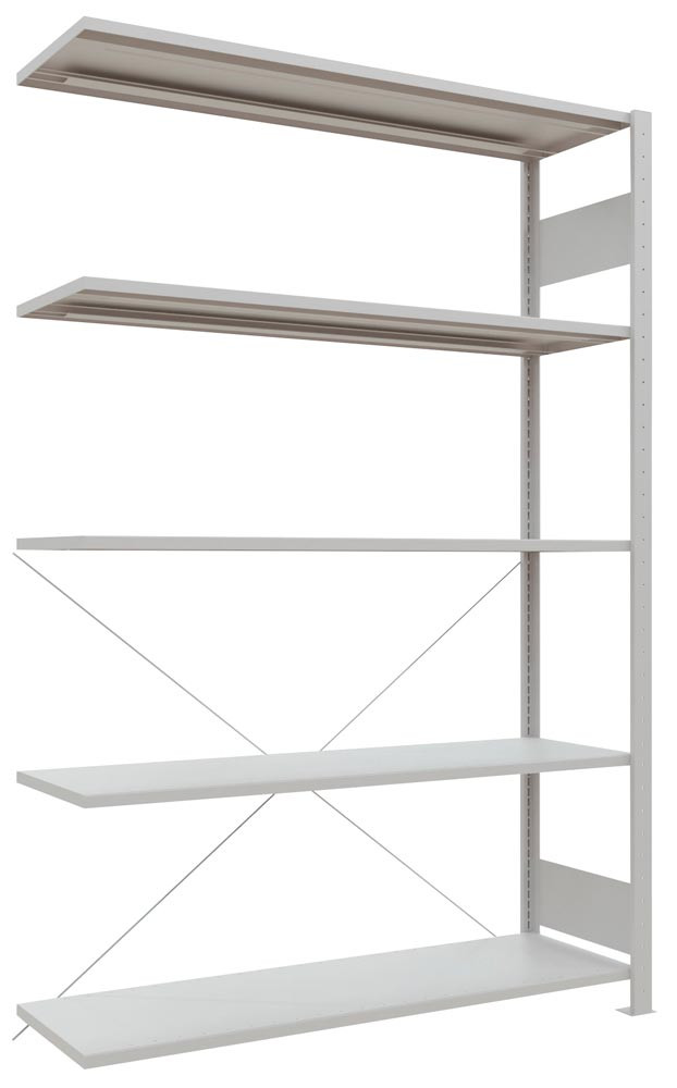 Großfach-Steckregal, Anbaufeld, RAL 7035 lichtgrau, Fachlast 150 kg, 5 Fachböden, BxTxH 1300x400x2000 mm