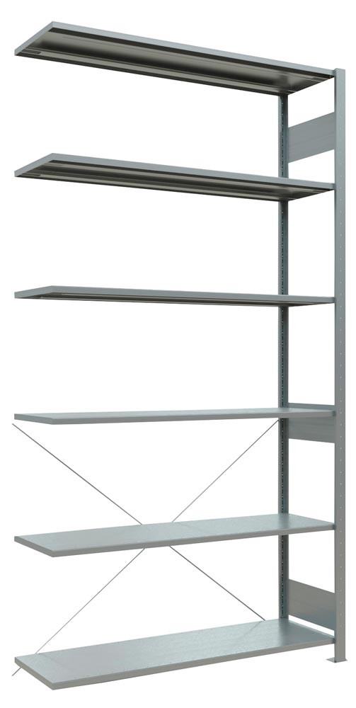 Großfach-Steckregal, Anbaufeld, verzinkt, Fachlast 150 kg, 6 Fachböden, BxTxH 1300x500x2500 mm