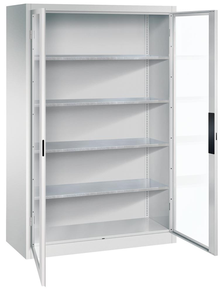 Großraum-Werkzeugschrank mit Sichtfenstertüren, 4 Verstellböden, BxTxH 1200x500x1950 mm, RAL 7035 E1985097