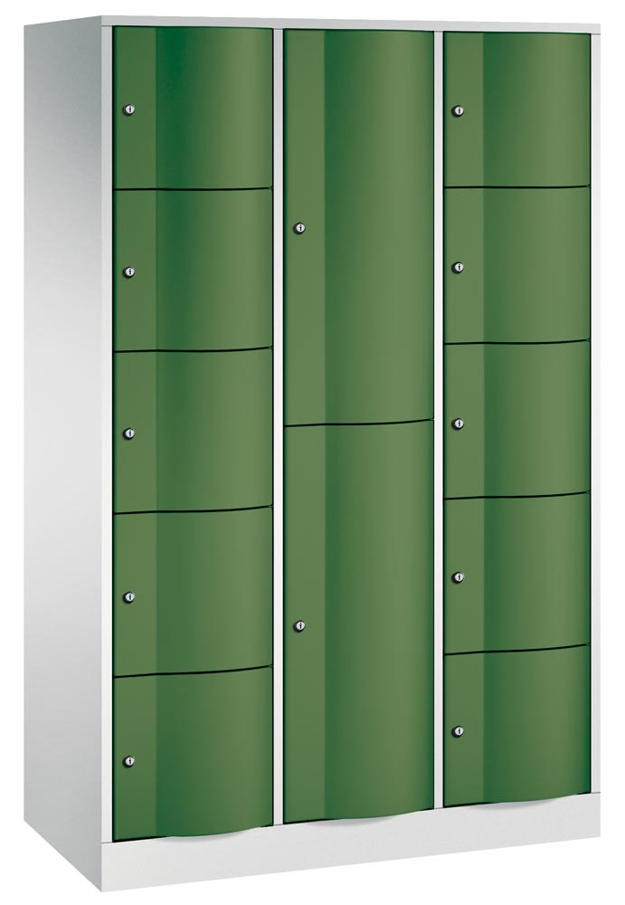 Großraum-Wertfachschrank mit Spezialtüren, 12 Abteile, BxTxH 1150x540x1950 mm, RAL 7035/6011