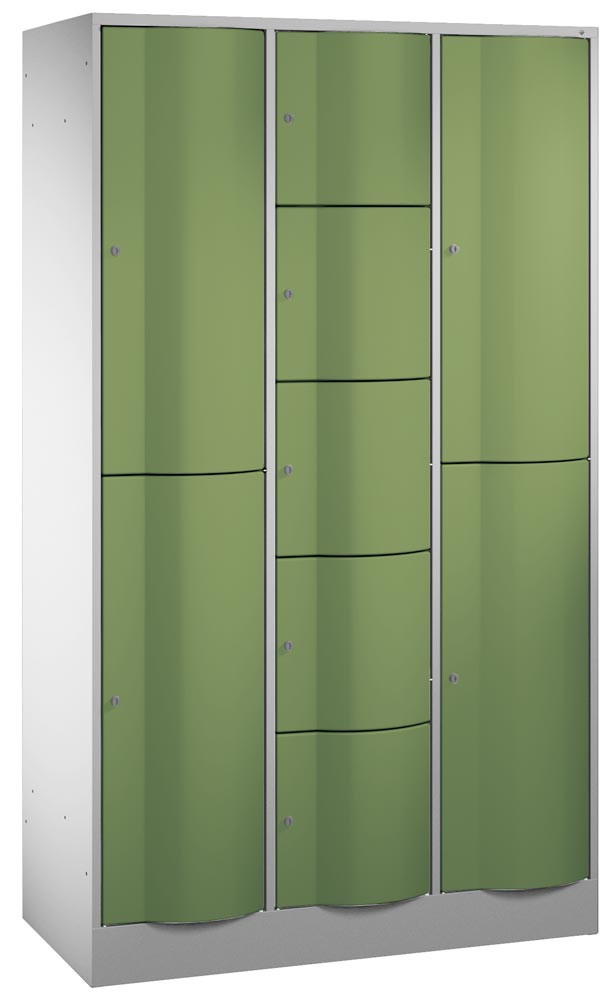 Großraum-Wertfachschrank mit Spezialtüren, 9 Abteile, BxTxH 1150x540x1950 mm, RAL 7035/6011 E1962810