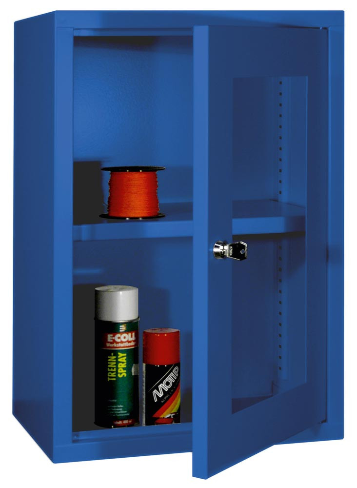 Hängeschrank, 1 Sichtfenstertür, Rückwand glatt, 1 verstellbarer Boden, Zylinderschloss BxTxH 400x300x600 mm, RAL 5010