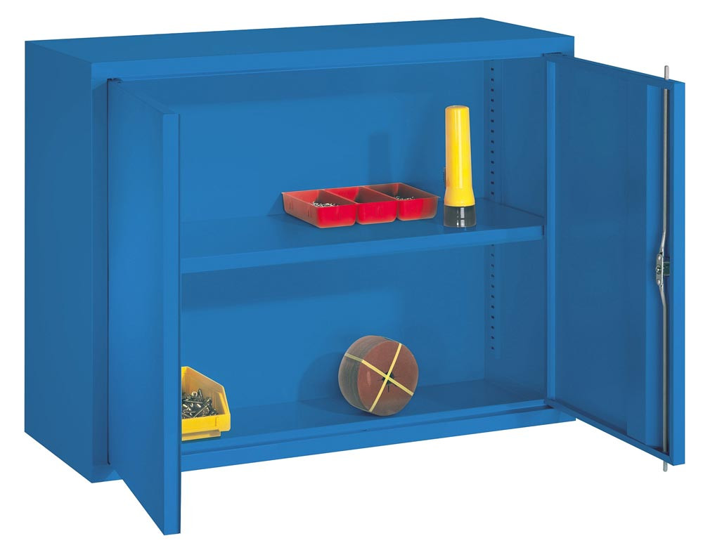 Hängeschrank, 2 Vollblechtüren, Rückwand glatt, 1 verstellbarer Boden, Zylinderschloss, BxTxH 800x300x600 mm, RAL 5015