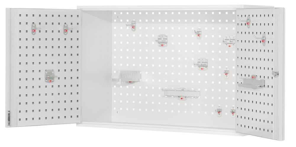 Hängeschrank, Rückwand mit Lochplatten, Türinnenseiten mit Schlitzpl., BxTxH 920x335x620 mm, RAL 7035 E849996