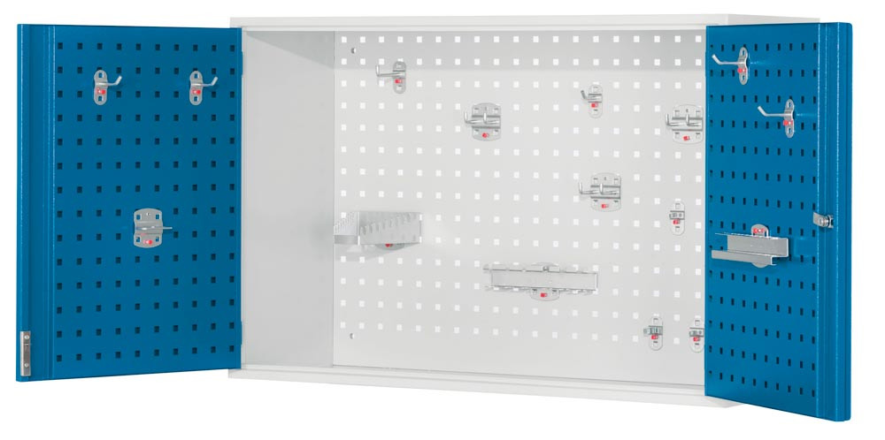 Hängeschrank, Rückwand und Türinnenseiten mit Lochwänden, BxTxH 920x335x620 mm, RAL 7035/5010