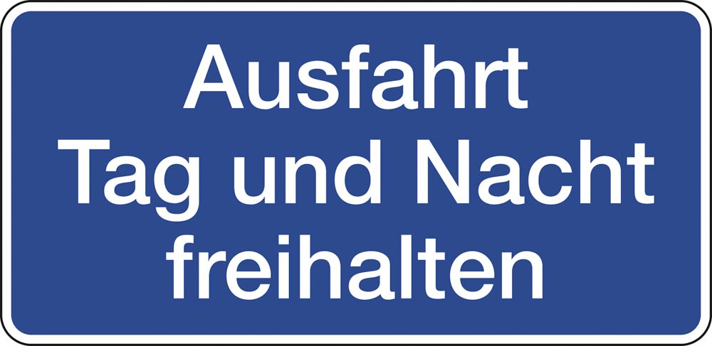 | Ausführung Parkplatzschild | Ausfahrt Tag und Nacht freihalten |