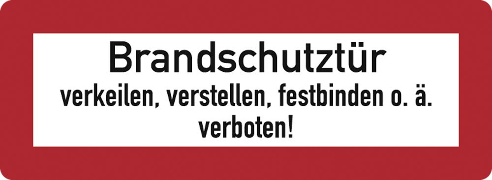 Hinweisschild, Brandschutzkennzeichnung, Brandschutztür verkeilen, verstellen, festbinden o.ä. verboten, Folie, 210x74 mm