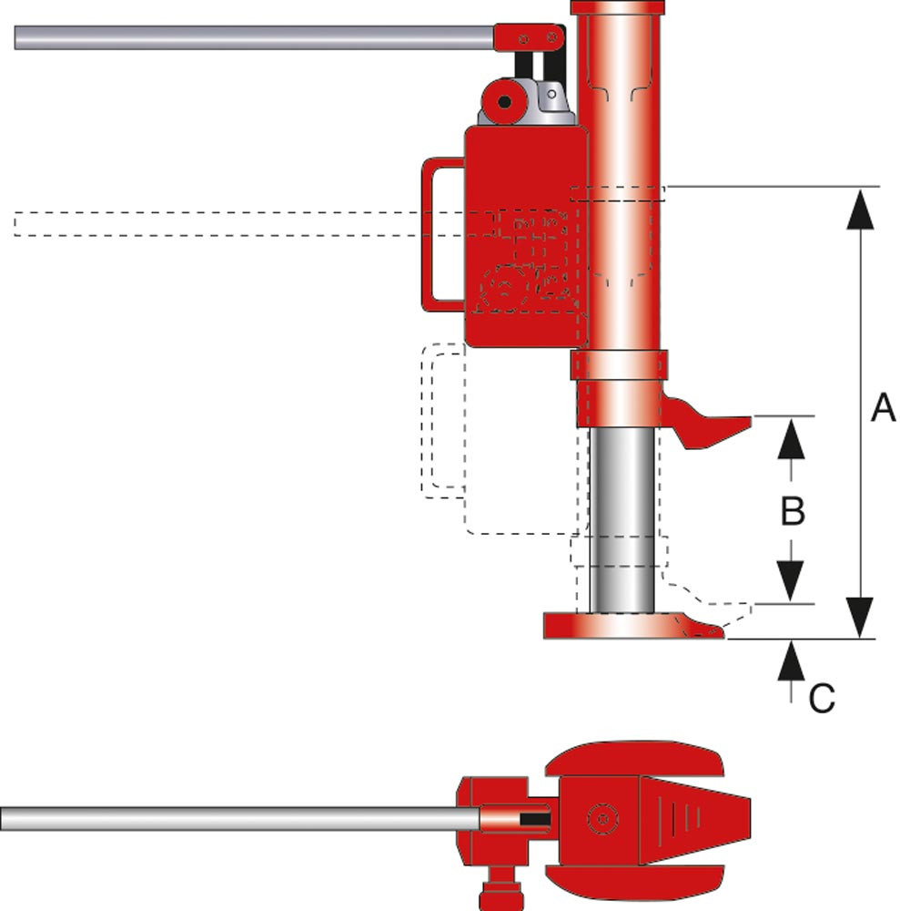 ∙ Besonders geeignet für Reparaturen, Wartungsarbeiten oder zum Einbau schwerer Maschinen ∙ Vertikal oder horizontal einsetzbar ∙ Hubklaue um 360° drehbar ∙ Absenkgeschwindigkeit feinfühlig regulierbar ∙ Gegen Überlast durch Überdruckventil geschützt ∙ Mit sehr geringer Ansetzhöhe ∙ Handhebel abnehmbar