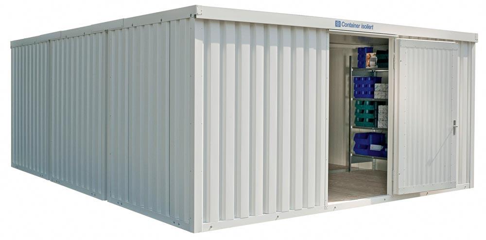Isolierter Lagercontainer, 2 Module, montiert, mit Holzfußboden, RAL 9002 grauweiß, BxTxH 4060x4350x2420 mm E829684