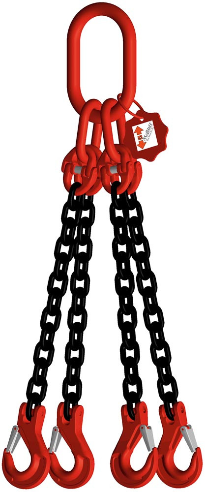 Kettengehänge, 4-strängig, Güteklasse 8, Traglast bei 45 Grad/60 Grad 2360/1700 kg, Kettendurchm. 6 mm, Nutzlänge 1 m