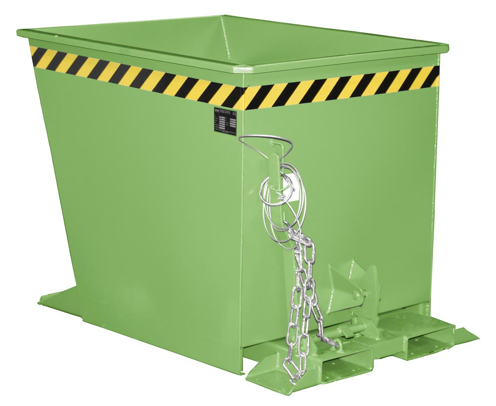 Kippbehälter, Stahl, LxBxH 1230x875x880 mm, Volumen 0,55 cbm, Traglast 1000 kg, Farbe RAL 6011 resedagrün