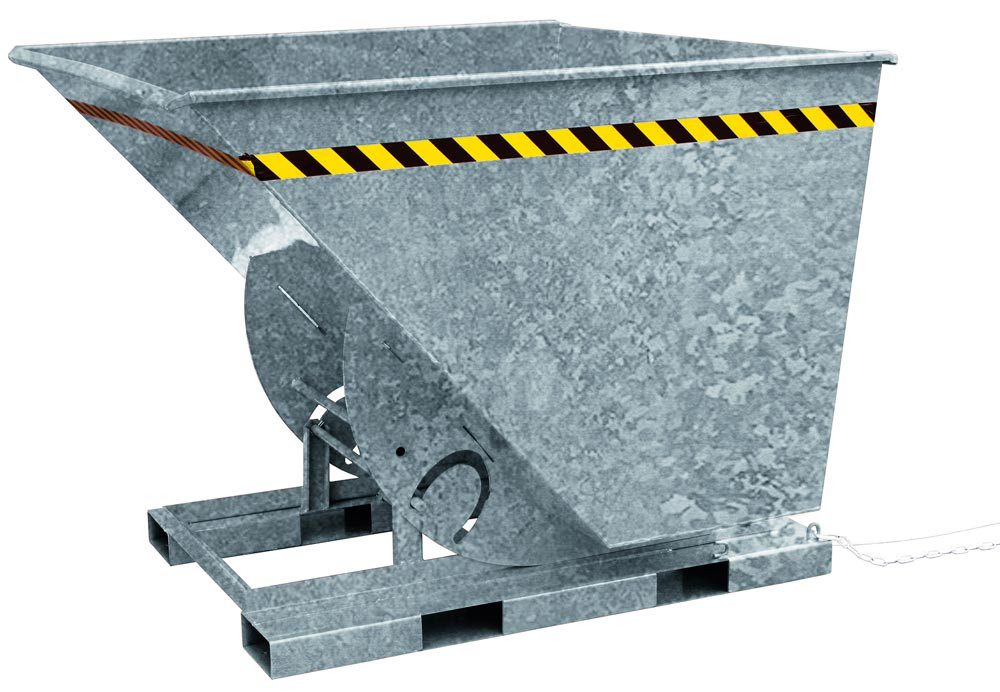 Kippbehälter in hoher Bauhöhe, quer zur und in Fahrtrichtung kippbar, LxBxH 1350x880x920 mm, Volumen 0,5 cbm, Traglast 1000 kg, verzinkt E6410952
