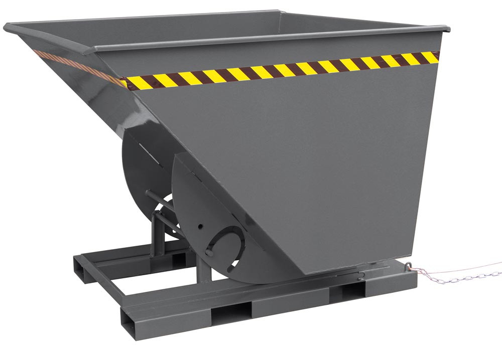 Kippbehälter in hoher Bauhöhe, quer zur und in Fahrtrichtung kippbar, LxBxH 1350x880x920 mm, Volumen 0,5 cbm, Traglast 1000 kg, RAL 7016 E6410950