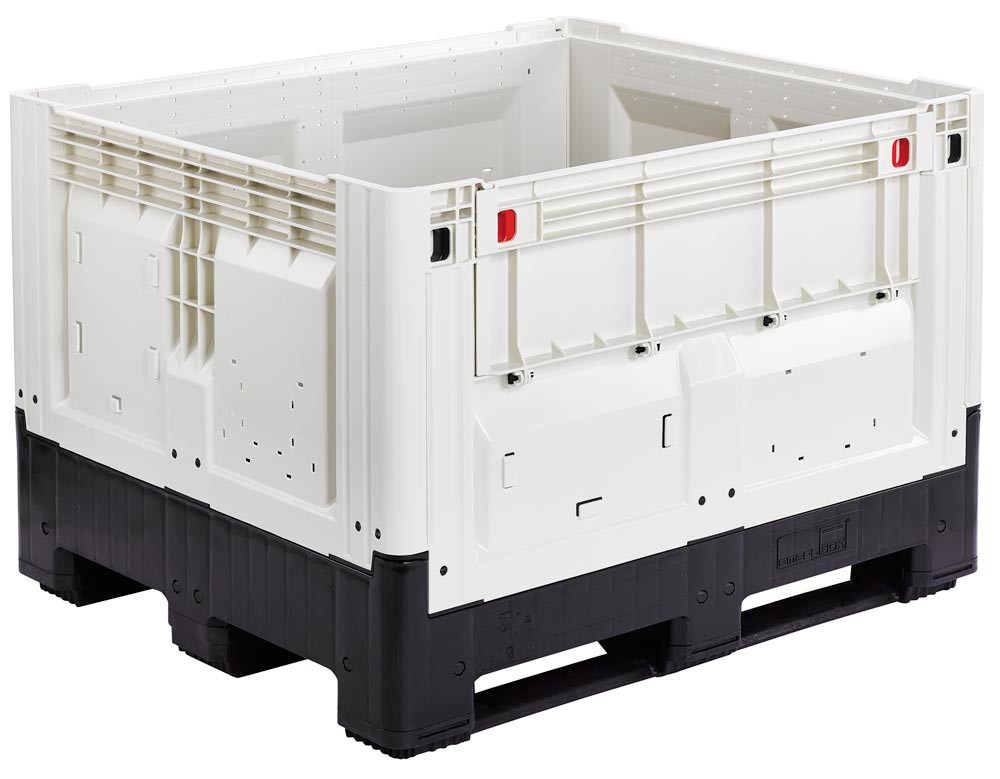 · Aus recyclebarem Polyethylen · Inklusive Entnahmeklappe an einer Längsseite · Ideal für eine ökonomische und zuverlässige Lagerung in der Industrie, dem Handel oder der Landwirtschaft · Einfaches Aufrichten und Zusammenklappen für eine Verbesserung der Betriebsabläufe Zusammenklappen der Wände ermöglicht je nach Höhe einen Raumgewinn von 1:2 oder 1:3 · Passgenaue Stapelung möglich · Farbe schwarz/elfenbein