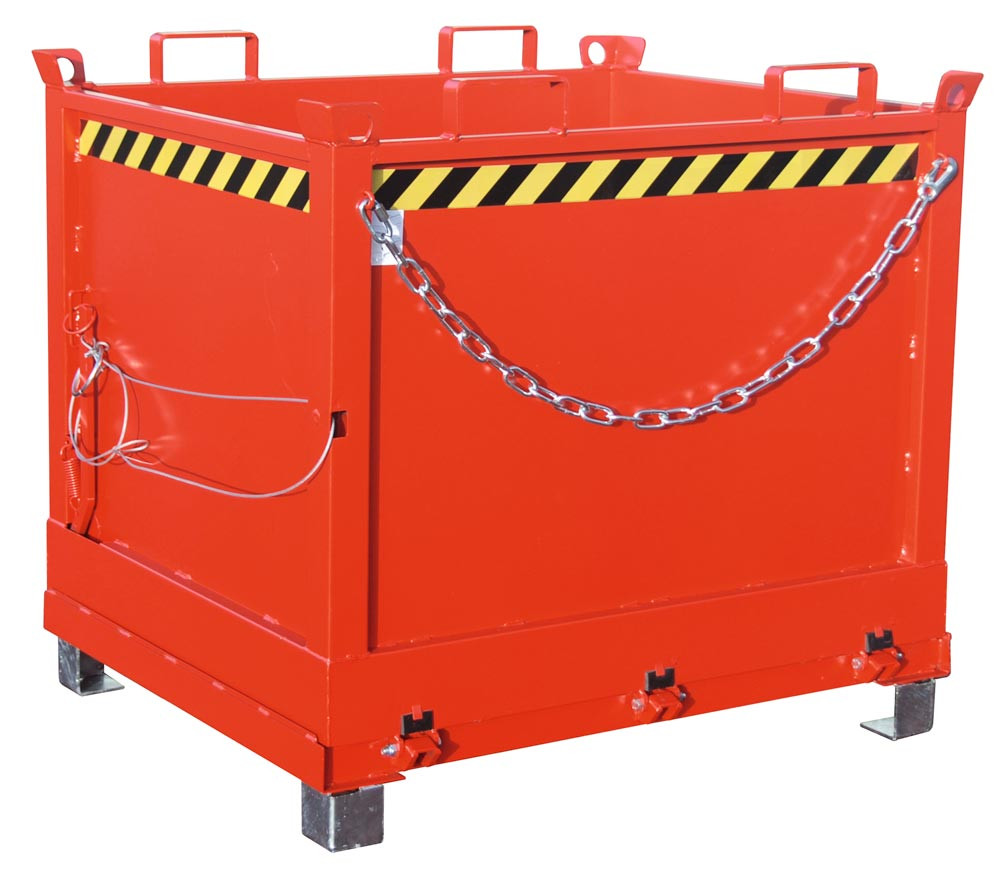 Klappbodenbehälter, Gummifederung, LxBxH 1040x1245x1145 mm, Vol. 1,0 cbm, Traglast 1250 kg, lackiert RAL 3000 feuerrot
