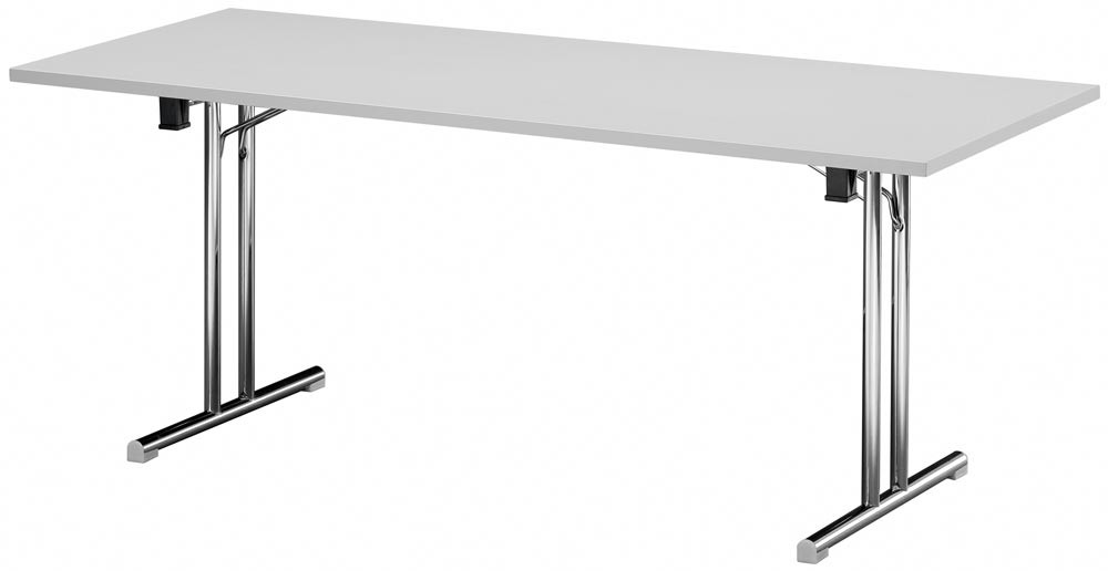 Klapptisch, BxTxH 1200x800x720 mm, T-Fuß-Gestell verchromt, gerade Kufen, melaminharzbesch. Platte lichtgrau