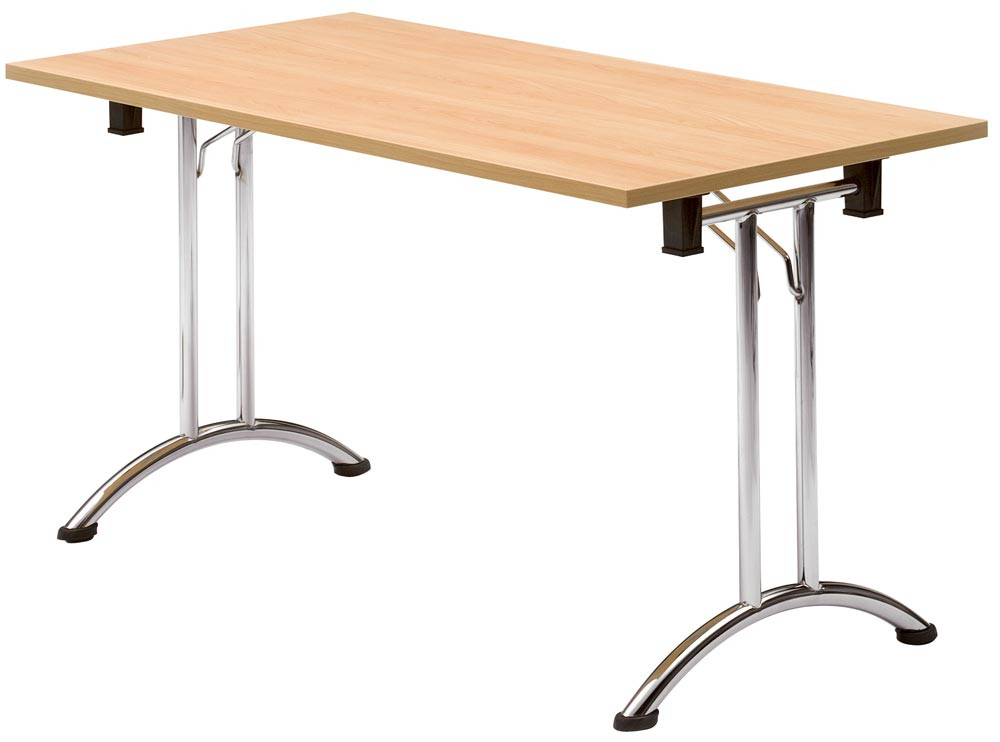 Klapptisch, BxTxH 1400x700x720 mm, T-Fuß-Gestell verchromt, gebogene Kufen, melaminharzbesch. Platte buche