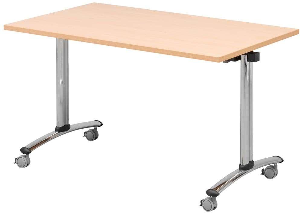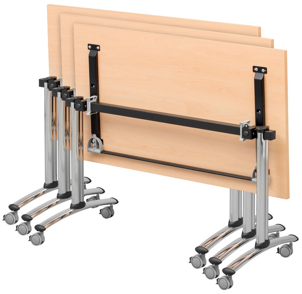 Klapptisch, BxTxH 1600x700x730 mm, T-Fuß-Säulen-Gestell weissalu, fahrbar, melaminbesch. Platte ahorn