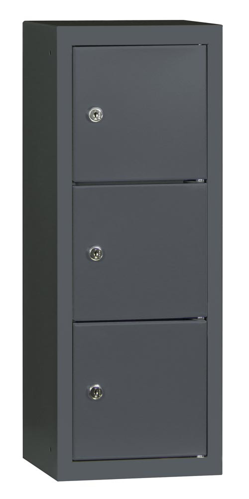 Kleinfachschrank, Modulsystem, Wandbefestigung, BxTxH 225x200x598 mm, 3 Fächer, Türen glatt, Schloss, RAL 7016 anthrazit