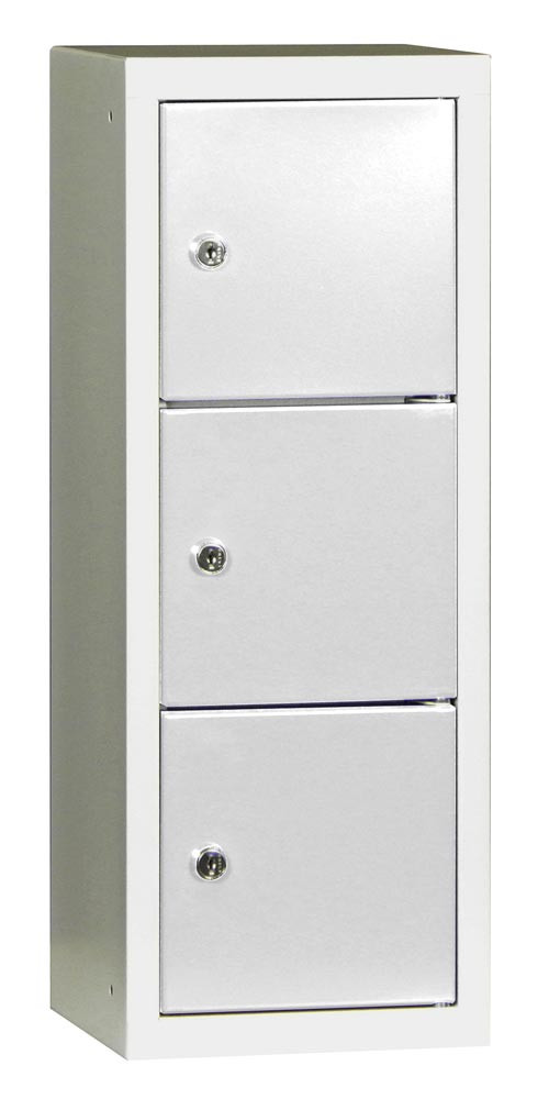 Kleinfachschrank, Modulsystem, Wandbefestigung, BxTxH 225x200x598 mm, 3 Fächer, Türen glatt, Schloss, RAL 7035 lichtgrau