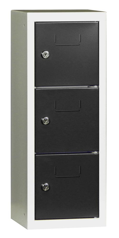 Kleinfachschrank, Modulsystem, Wandbefestigung, BxTxH 225x200x598 mm, 3 Fächer, Türen mit Etikettenrahmen, Schloss, RAL 7035/7016 lichtgrau/anthrazit
