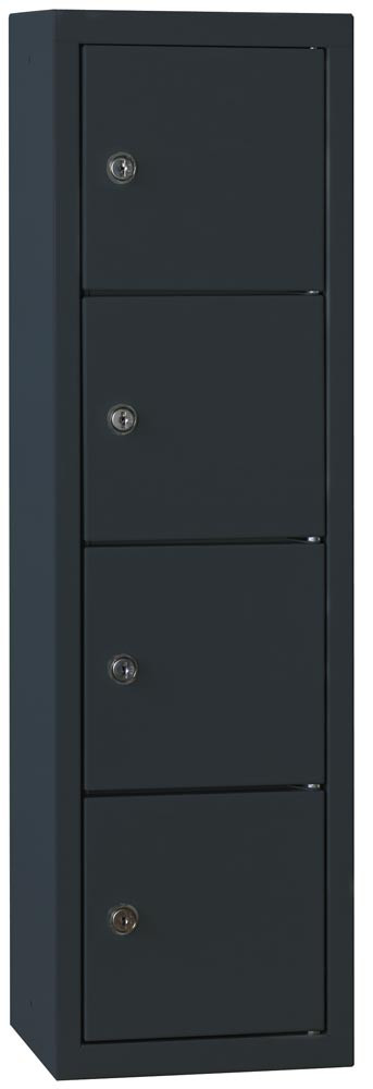 Kleinfachschrank, Modulsystem, Wandbefestigung, BxTxH 225x200x778 mm, 4 Fächer, Türen glatt, Schloss, RAL 7016 anthrazit