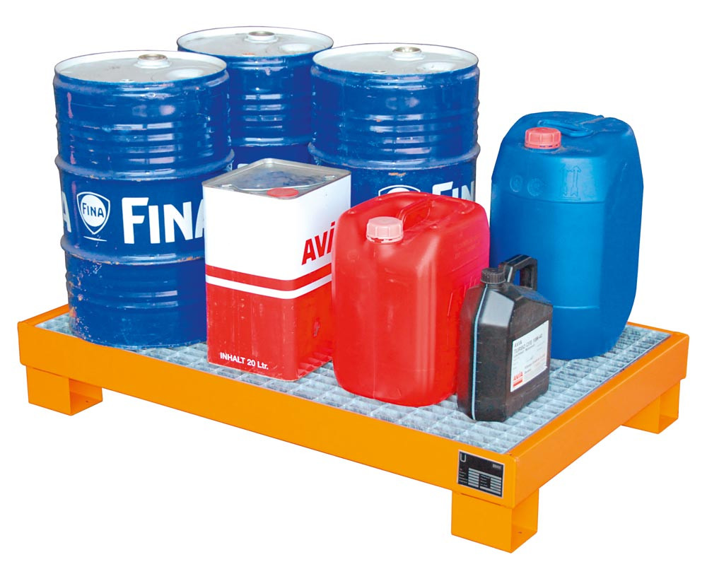 Kleingebinde-Auffangwanne, BxTxH 800x510x295 mm, Auffangvolumen 61 l, mit Gitterrost, 2x60 l-Fass, RAL 2000 E816451