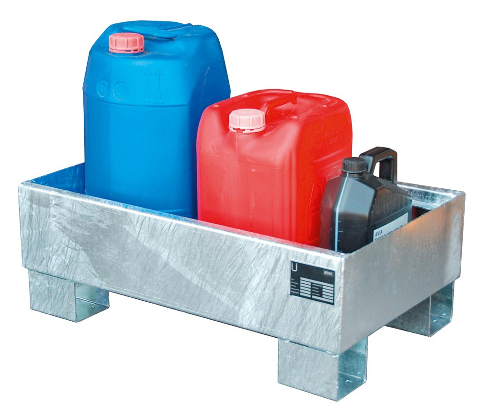 Kleingebinde-Auffangwanne, BxTxH 800x500x290 mm, Auffangvolumen 65 l, ohne Gitterrost, RAL 7005 E816473