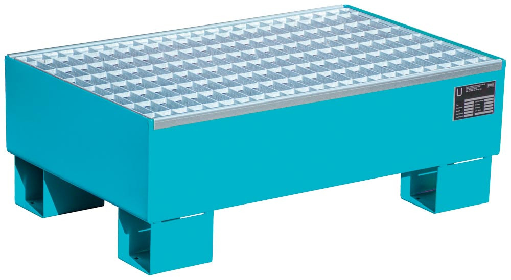 Kleingebinde-Auffangwanne, BxTxH 800x510x295 mm, Auffangvolumen 61 l, mit Gitterrost, 2x60 l-Fass, RAL 5012 E816453
