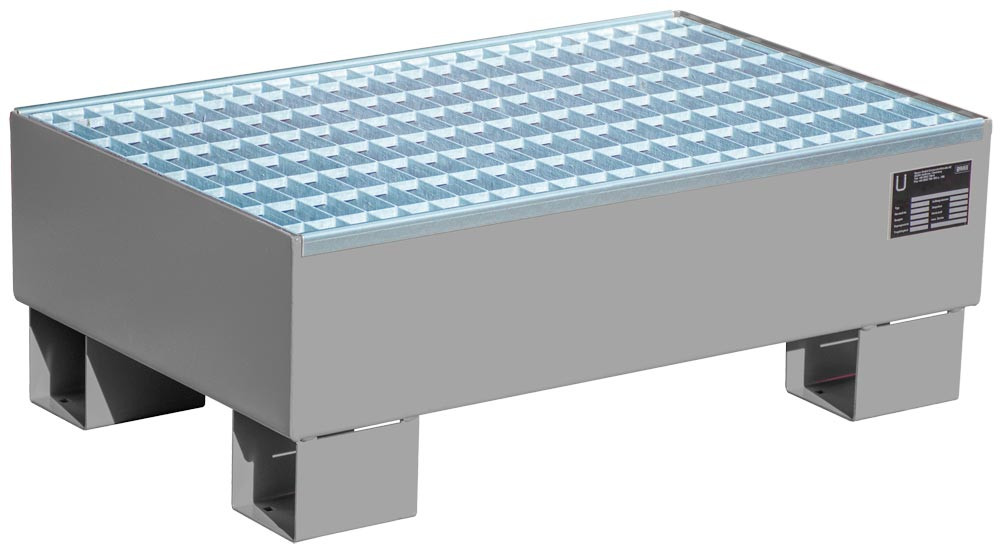 Kleingebinde-Auffangwanne, BxTxH 800x510x295 mm, Auffangvolumen 61 l, mit Gitterrost, 2x60 l-Fass, RAL 7005 E816455