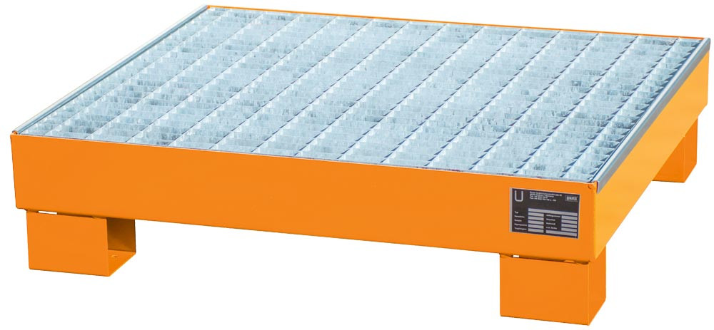 Kleingebinde-Auffangwanne, BxTxH 800x510x295 mm, Auffangvolumen 61 l, mit Gitterrost, 2x60 l-Fass, RAL 2000 E816451