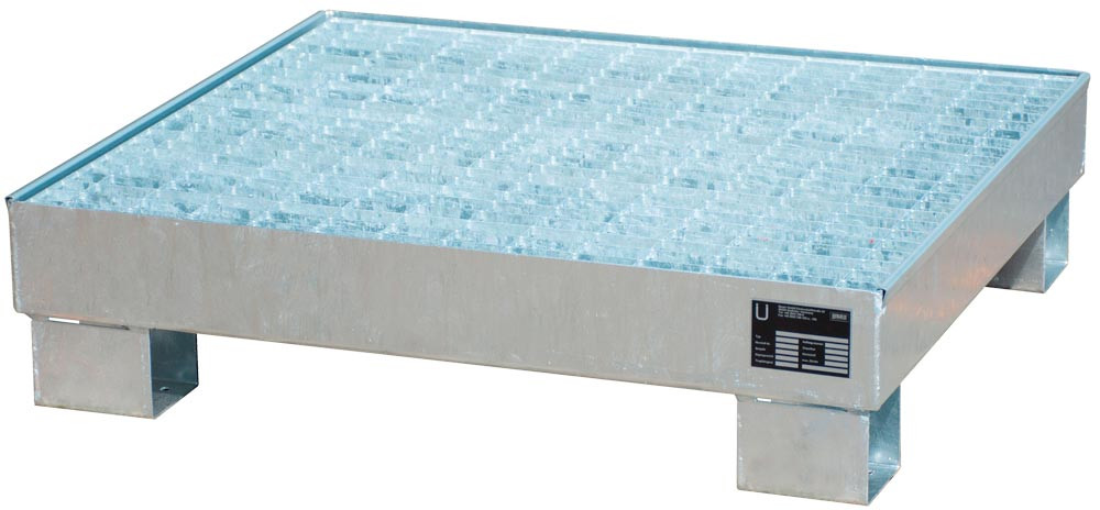 Kleingebinde-Auffangwanne, BxTxH 910x800x225 mm, Auffangvolumen 61 l, mit Gitterrost, 4x60 l-Fass, verzinkt