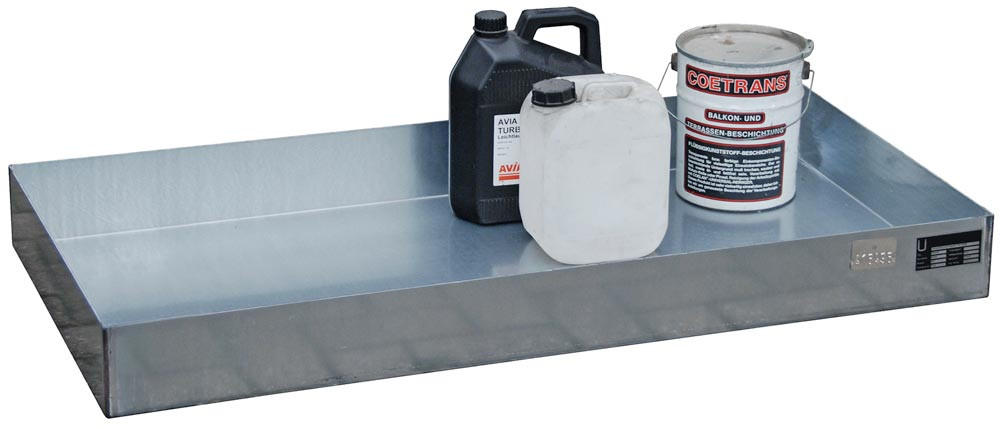 Kleingebindewannen aus verzinktem Stahlblech für Paletten, BxTxH 400x600x120 mm, Auffangvolumen 20 l, Traglast 50 kg, Gewicht 11 kg E1981824