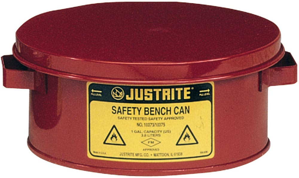aus Stahlblech · innen zinnbeschichtet, außen mit hochwertiger Pulverbeschichtung · ideal zum Reinigen von Kleinteilen oder zum Eintauchen von Werkstücken · federbedientes Eintauchsieb, dient gleichzeitig als Flammsperre · dosierte, effiziente Verwendung von Lösemittel · Sicherheit durch integrierten Kantenschutz · Behälterkennzeichnung im Lieferumfang enthalten