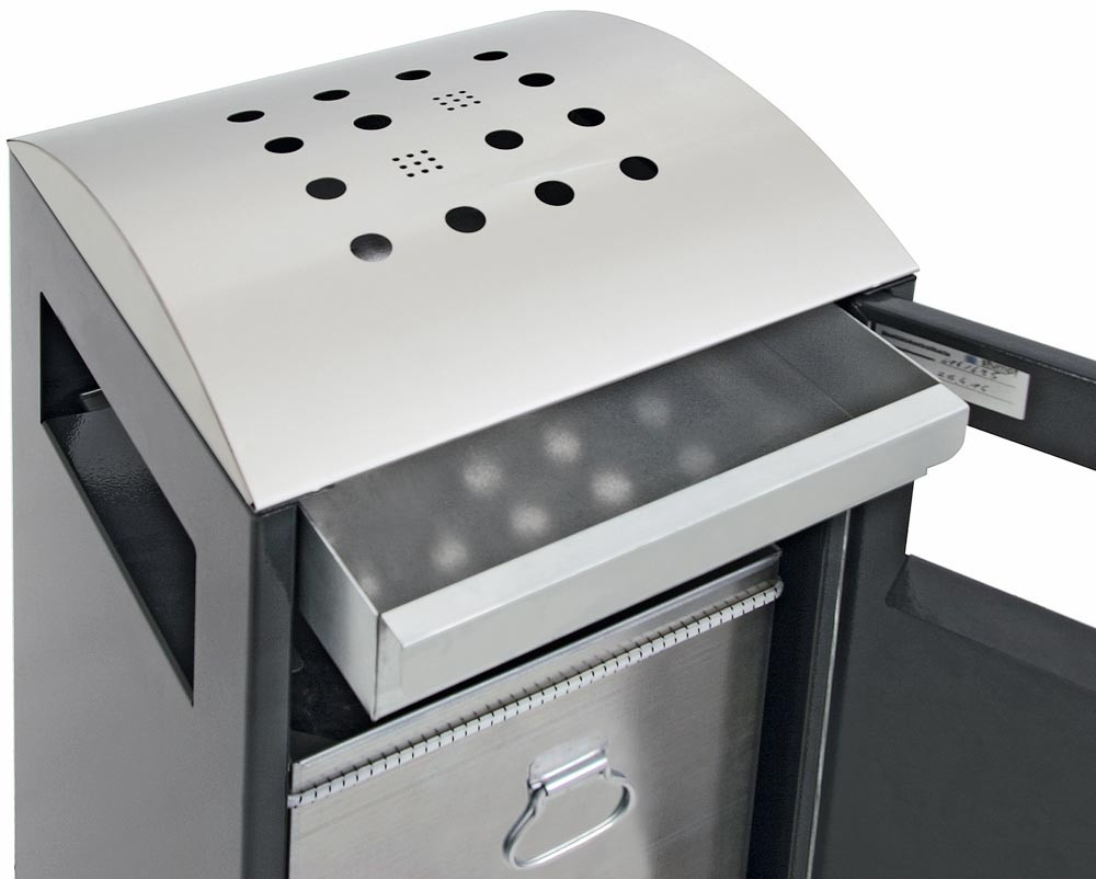 Kombi-Ascher, Edelstahl Kopfelement, Ascherlade 9 l, verz. Inneneimer Vol. 90 l, RAL 7016, BxTxH 450x450x1060 mm