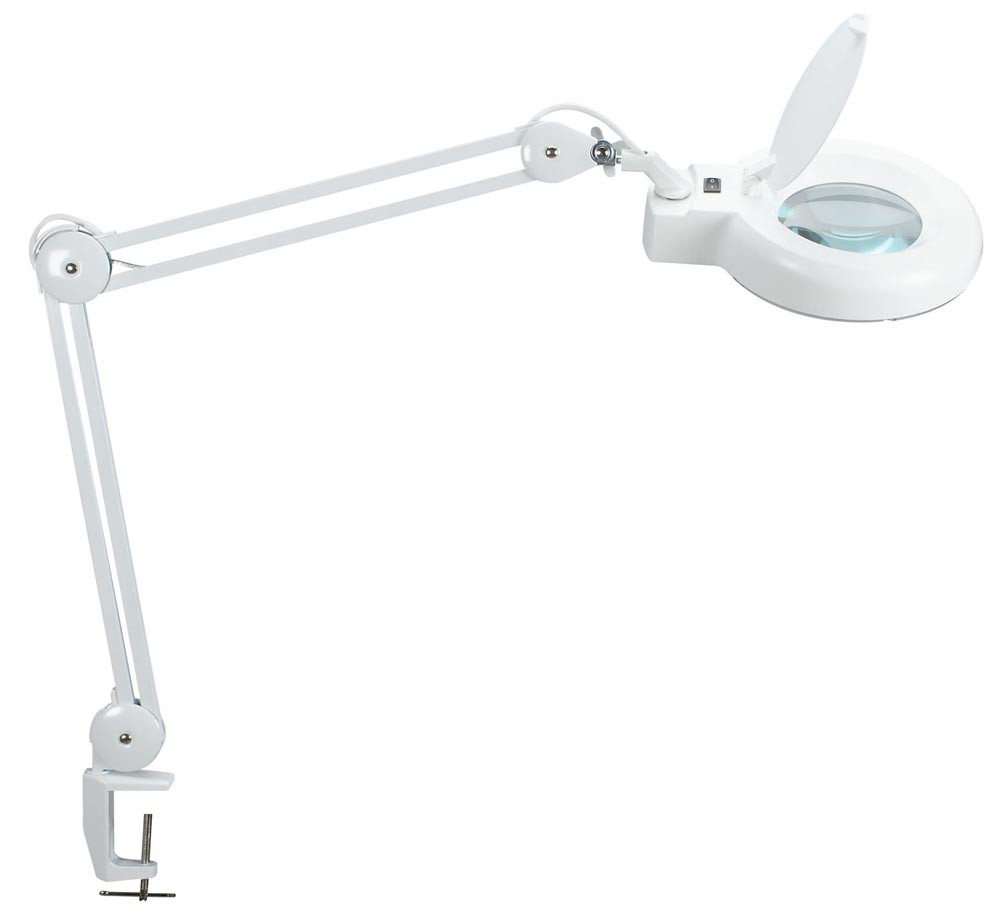 LED-Lupenleuchte Glaslinse 127mm 5 Zoll Tischklemme weiß m.Abdeckung,runder Kopf